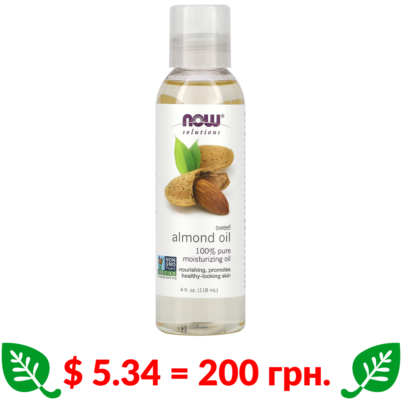 $ 5.34 = 200 грн. Now Foods, Solutions, олія солодкого мигдалю, 118 мл (4 рідк. унції)
