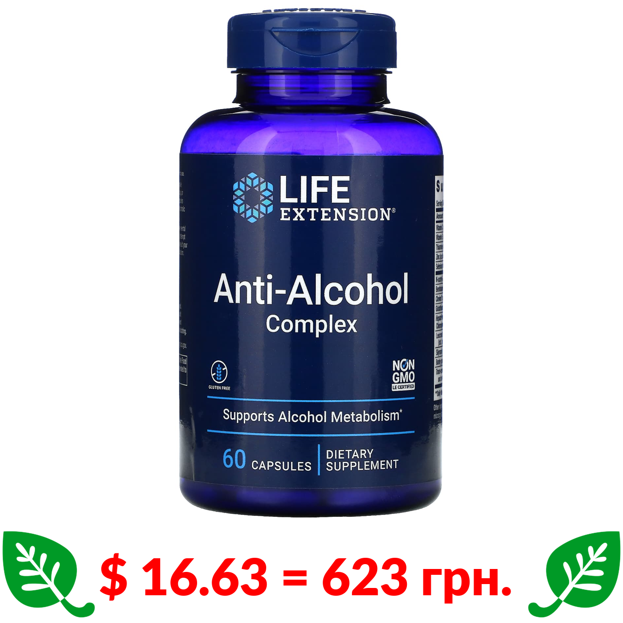 $ 16.63 = 623 грн. Life Extension, Anti-Alcohol Complex, 60 Capsules