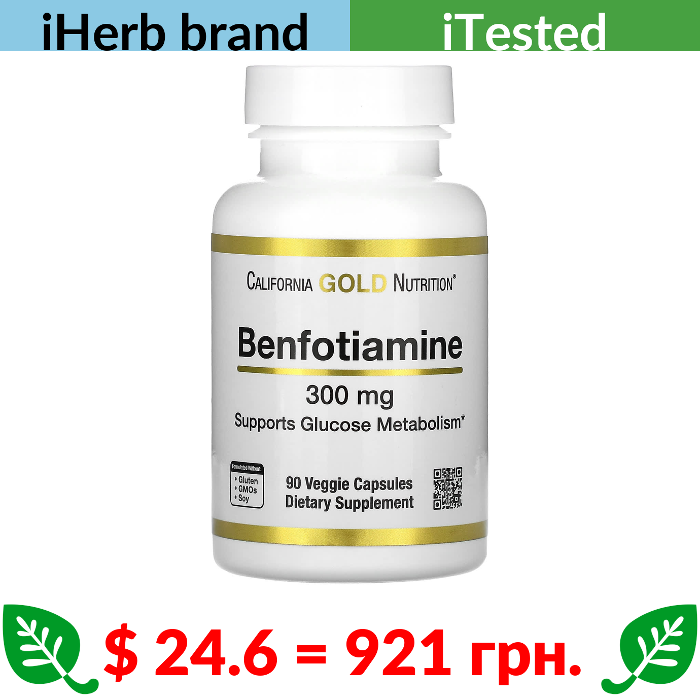 $ 24.6 = 921 грн. California Gold Nutrition, Benfotiamine, 300 mg, 90 Veggie Capsules