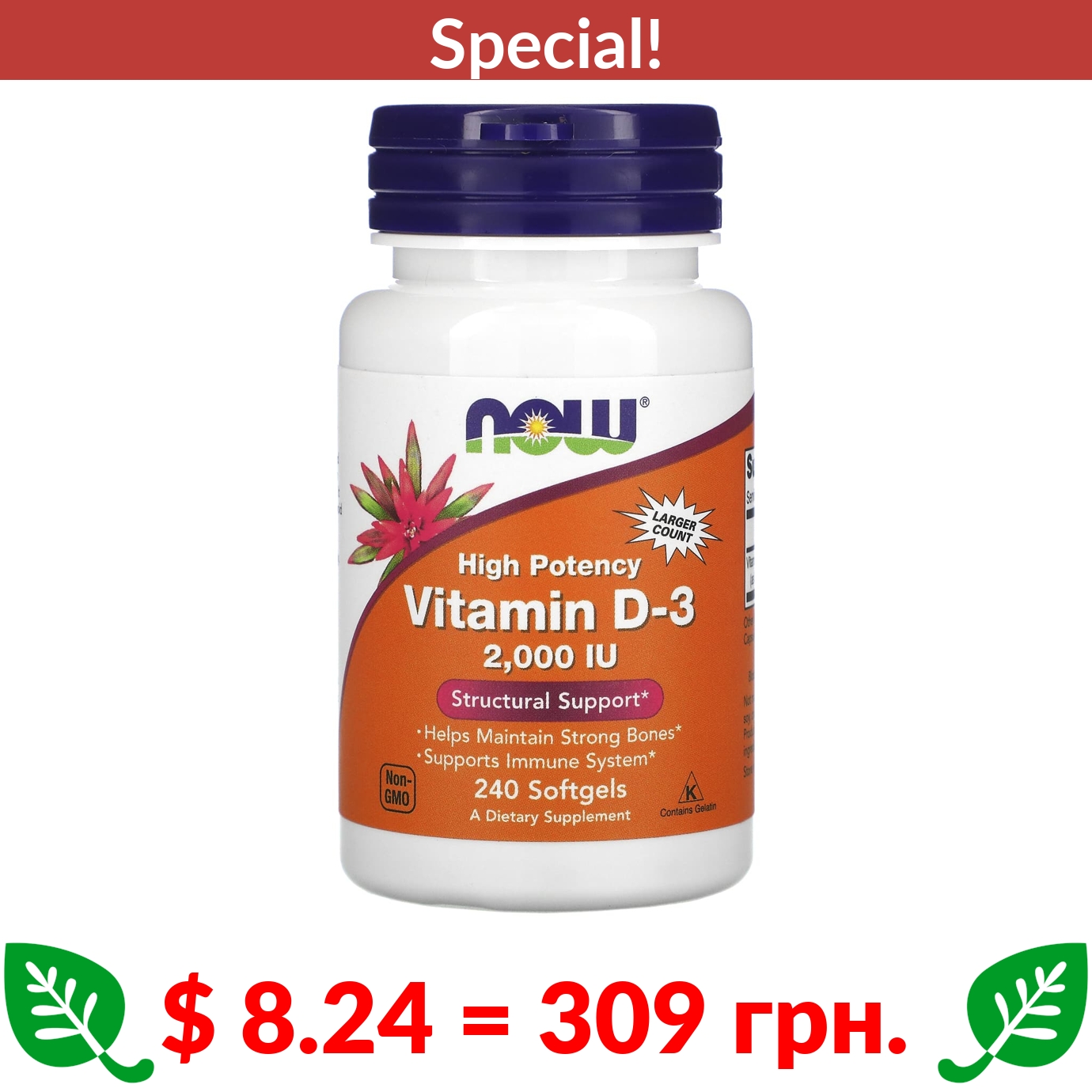 $ 8.24 = 309 грн. ???? cуперакція! ???? NOW Foods, Vitamin D-3 , 50 mcg (2,000 IU), 240 Softgels