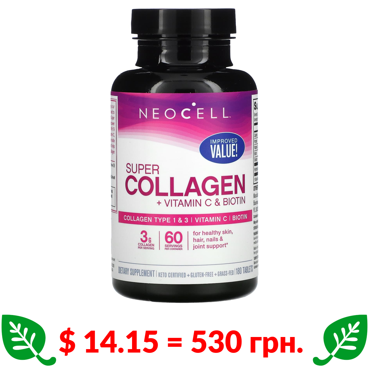 $ 14.15 = 530 грн. ????️ у кошику ????️ NeoCell, Super Collagen, + Vitamin C & Biotin, 180 Tablets