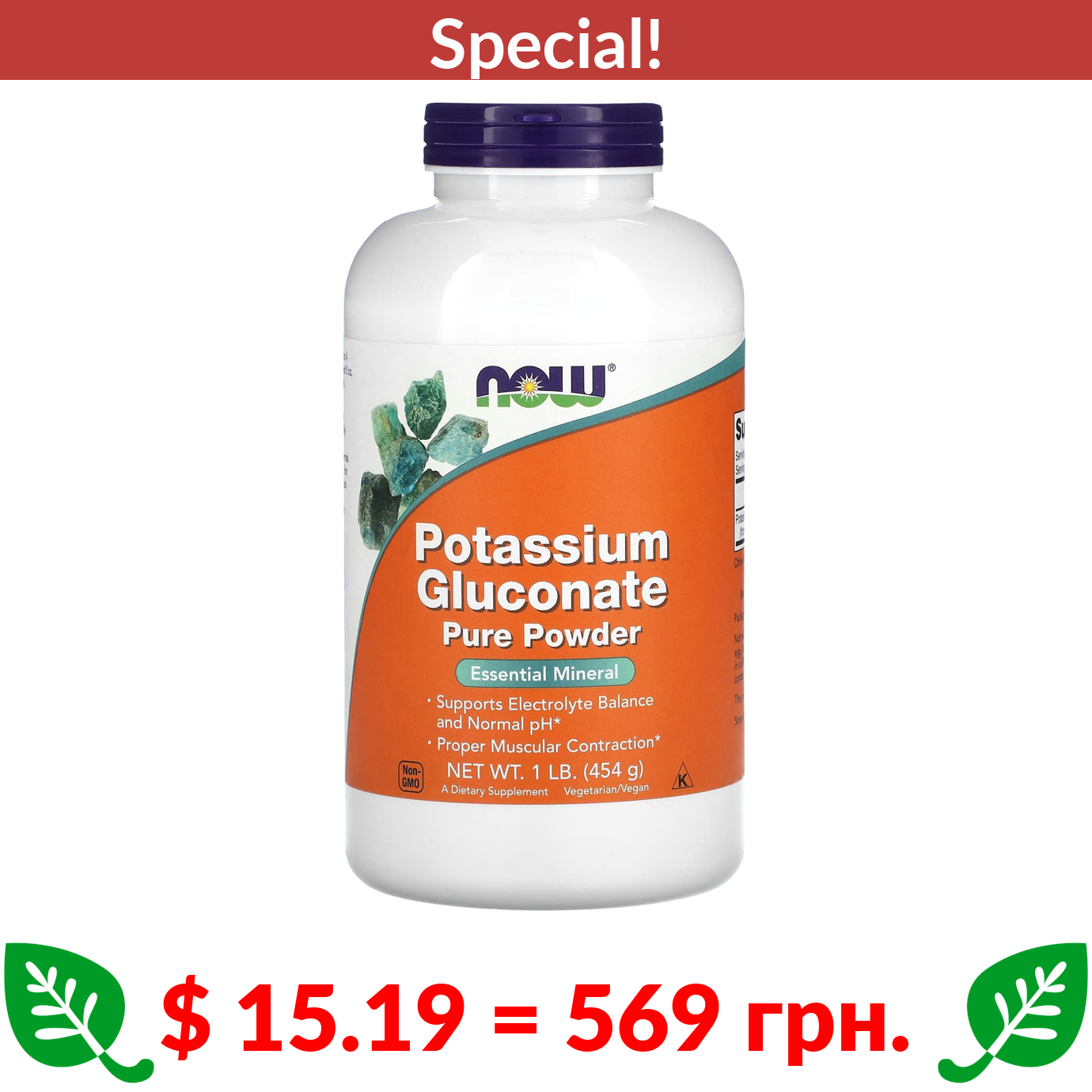 $ 15.19 = 569 грн. ???? cуперакція! ???? NOW Foods, Potassium Gluconate Pure Powder, 1 lb (454 g)
