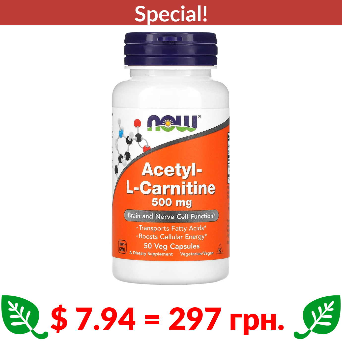 $ 7.94 = 297 грн. ???? cуперакція! ???? NOW Foods, Acetyl-L- Carnitine, 500 mg, 50 Veg Capsules