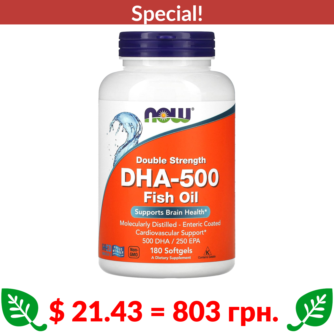 $ 21.43 = 803 грн. ???? cуперакція! ???? NOW Foods, Double Strength DHA-500 Fish Oil, 180 Softgels