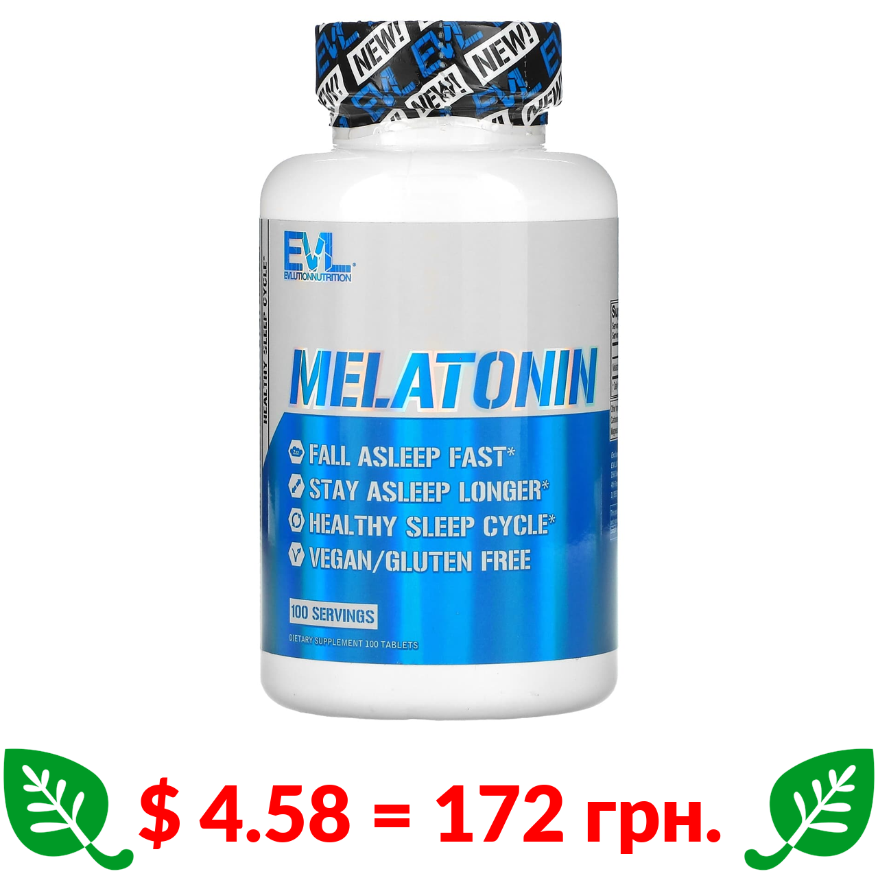 $ 4.58 = 172 грн. ????️ у кошику ????️ EVLution Nutrition, Melatonin, 100 Tablets