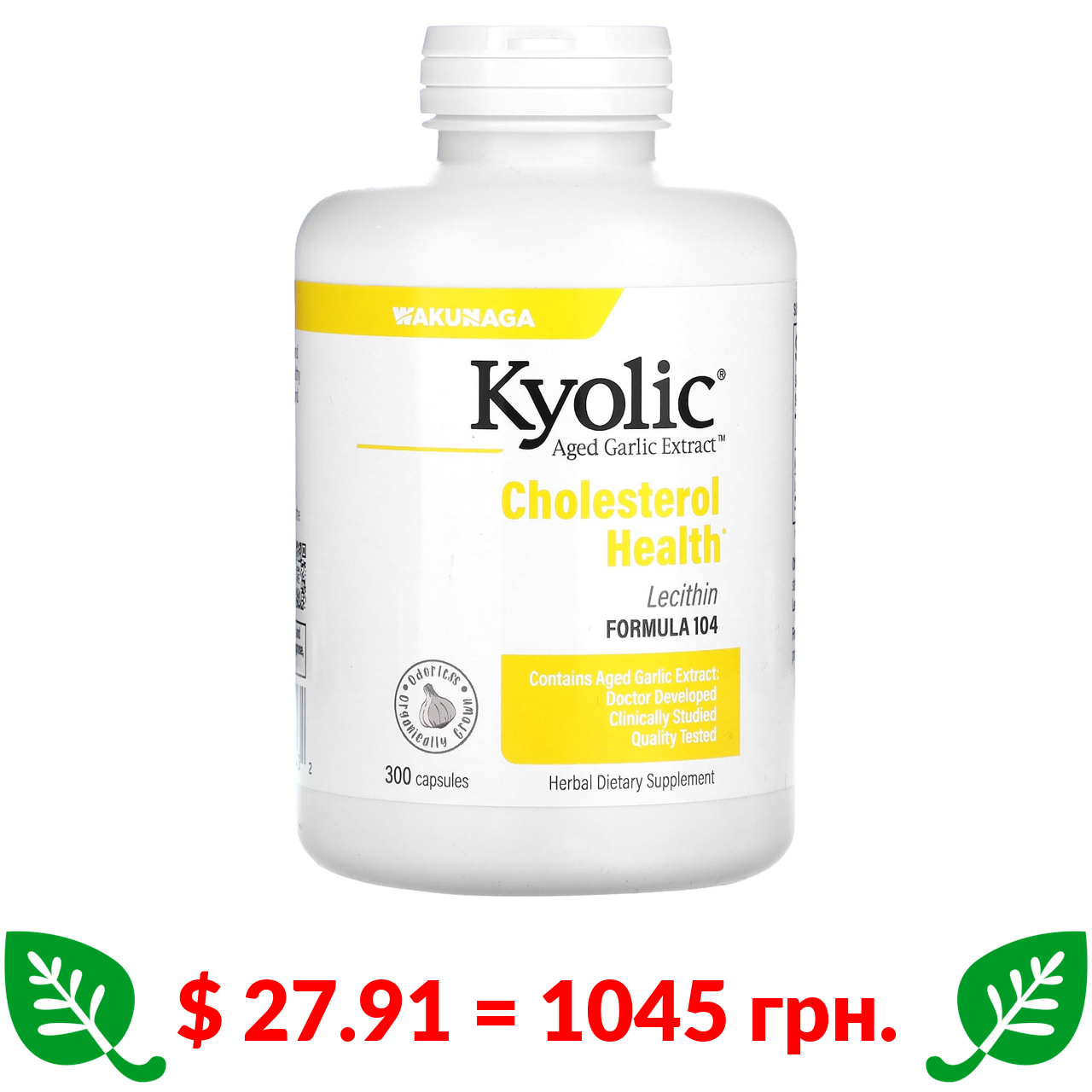 $ 27.91 = 1045 грн. Kyolic, Aged Garlic Extract with Lecithin, Cholesterol Formula 104, 300 Capsules