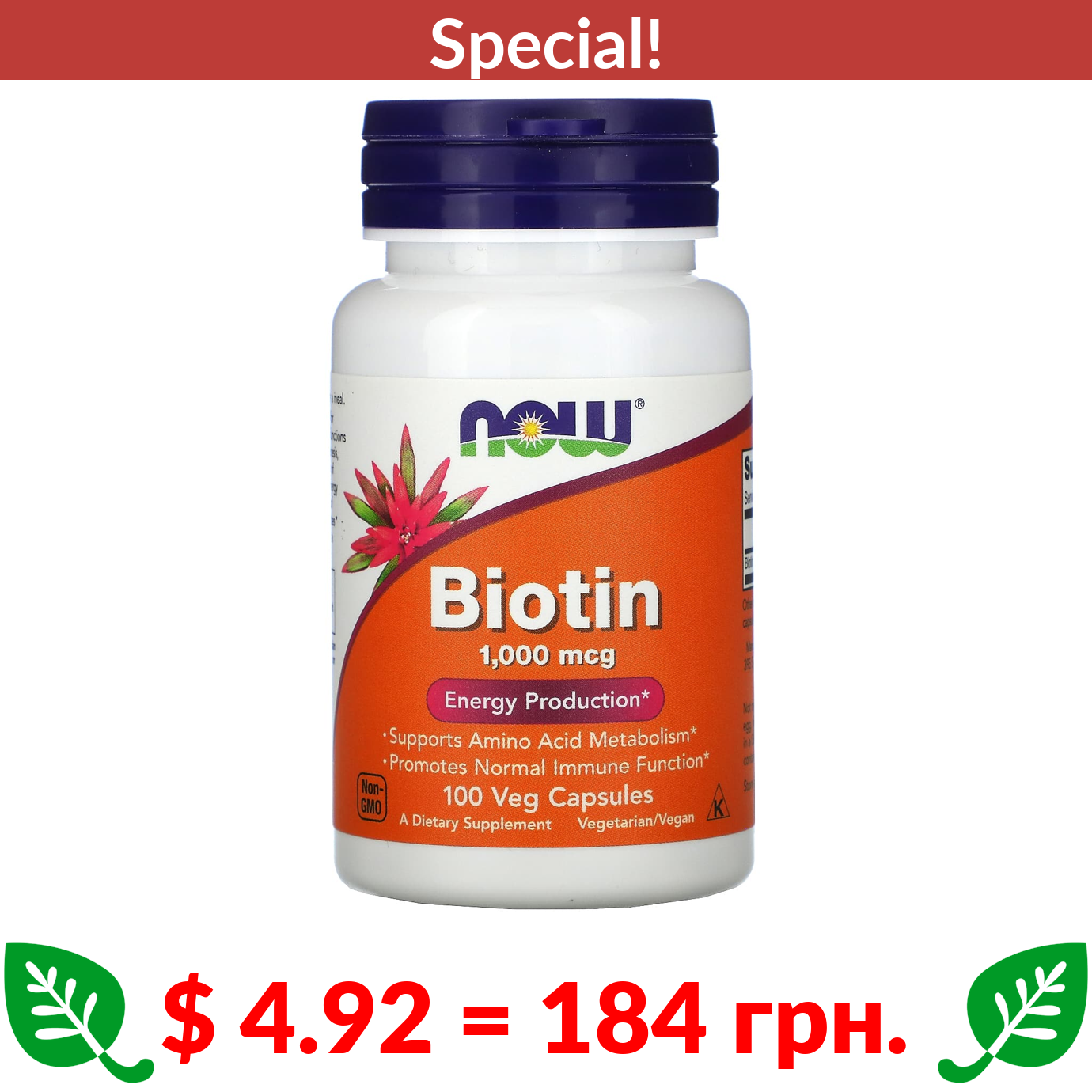 $ 4.92 = 184 грн. ???? cуперакція! ???? NOW Foods, Biotin, 1,000 mcg, 100 Veg Capsules