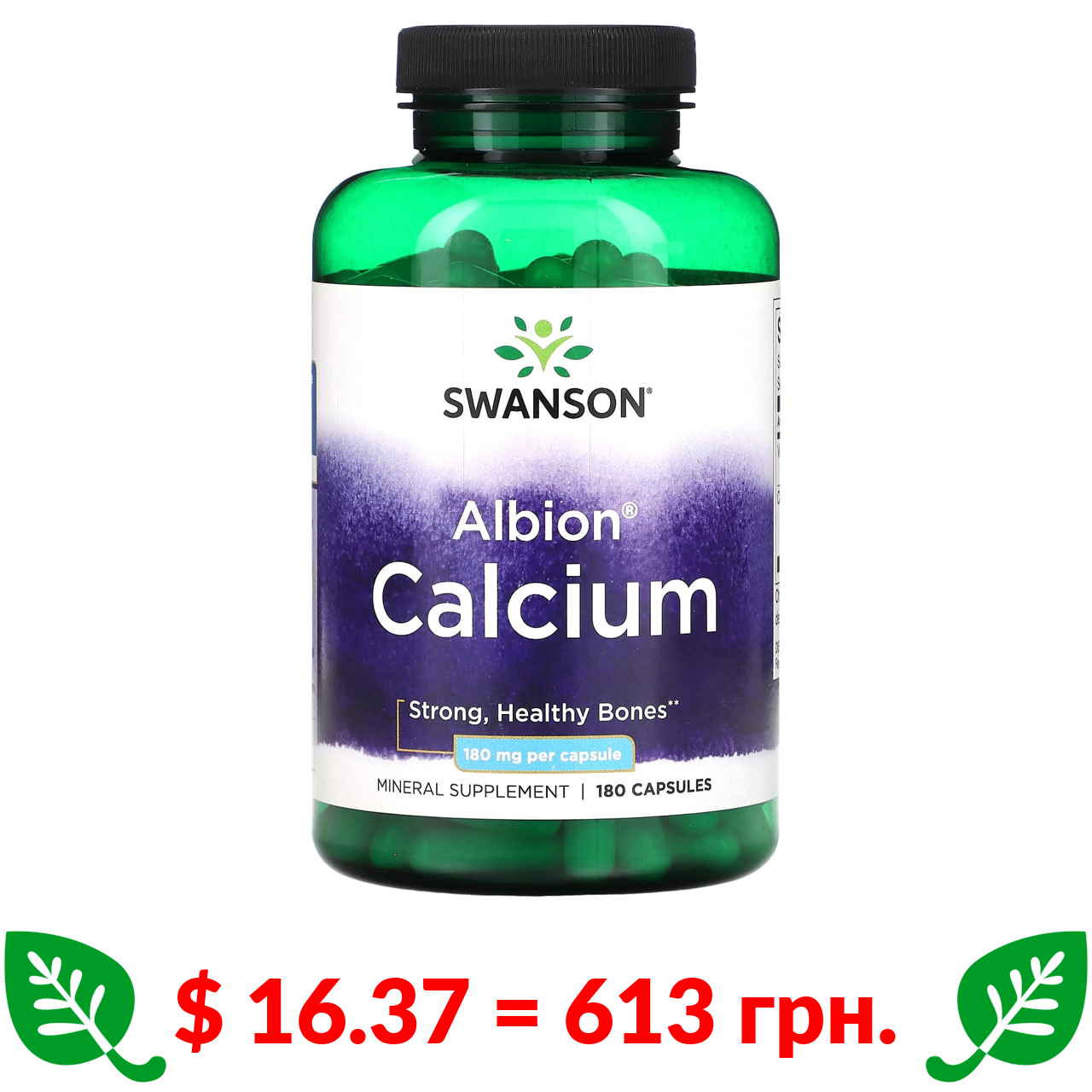 $ 16.37 = 613 грн. Swanson, Albion, Calcium, 180 mg, 180 Capsules
