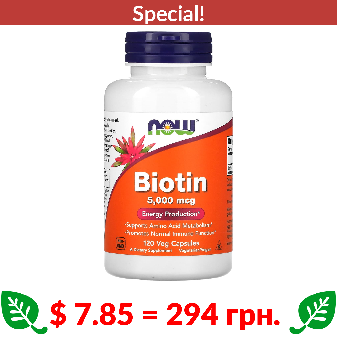 $ 7.85 = 294 грн. ???? cуперакція! ???? NOW Foods, Biotin, 5,000 mcg, 120 Veg Capsules