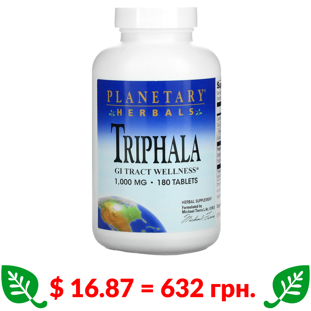 $ 16.87 = 632 грн. Planetary Herbals, Triphala, GI Tract Wellness, 1,000 mg, 180 Tablets