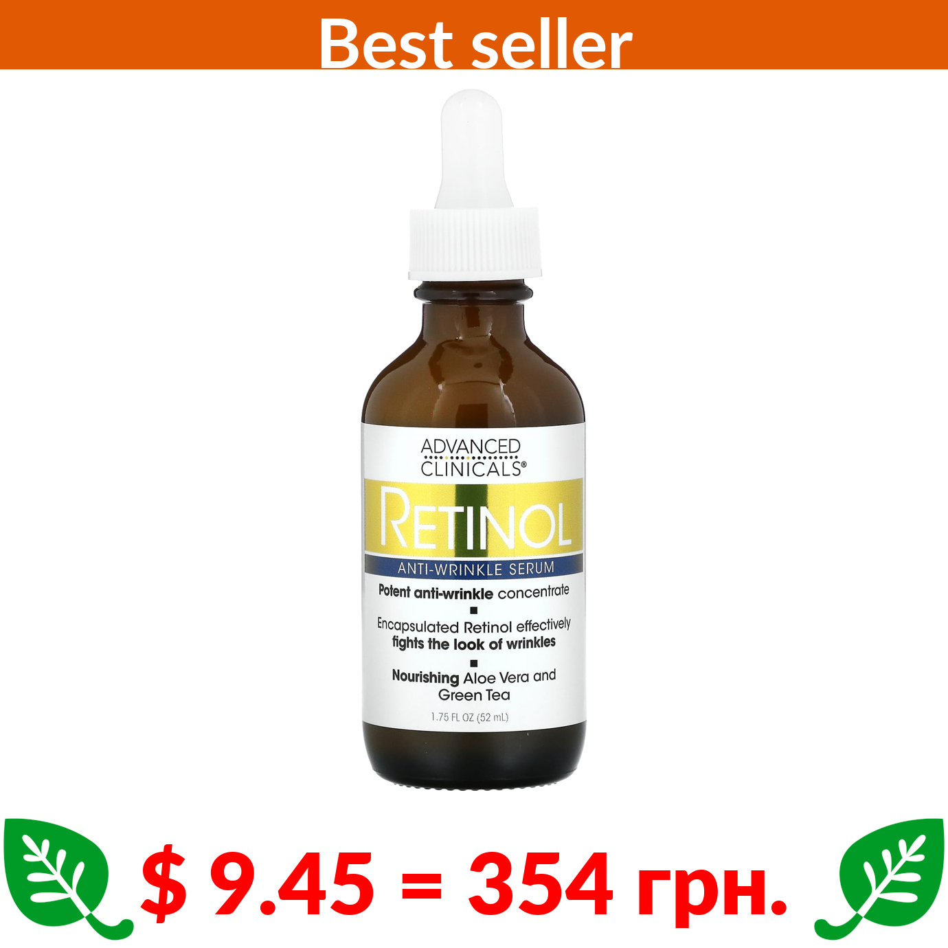 $ 9.45 = 354 грн. Advanced Clinicals, Retinol Serum, Anti-Wrinkle, 1.75 fl oz (52 ml)