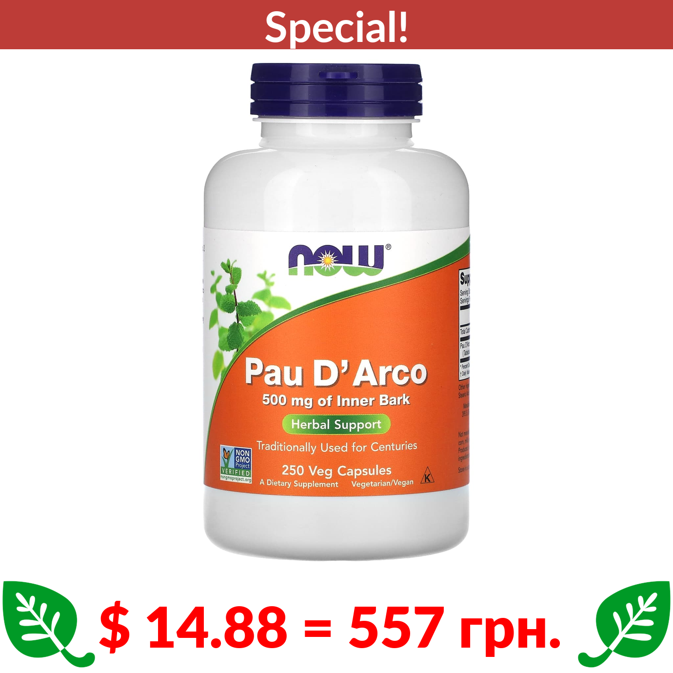 $ 14.88 = 557 грн. ???? cуперакція! ???? NOW Foods, Pau D’ Arco, 500 mg, 250 Veg Capsules