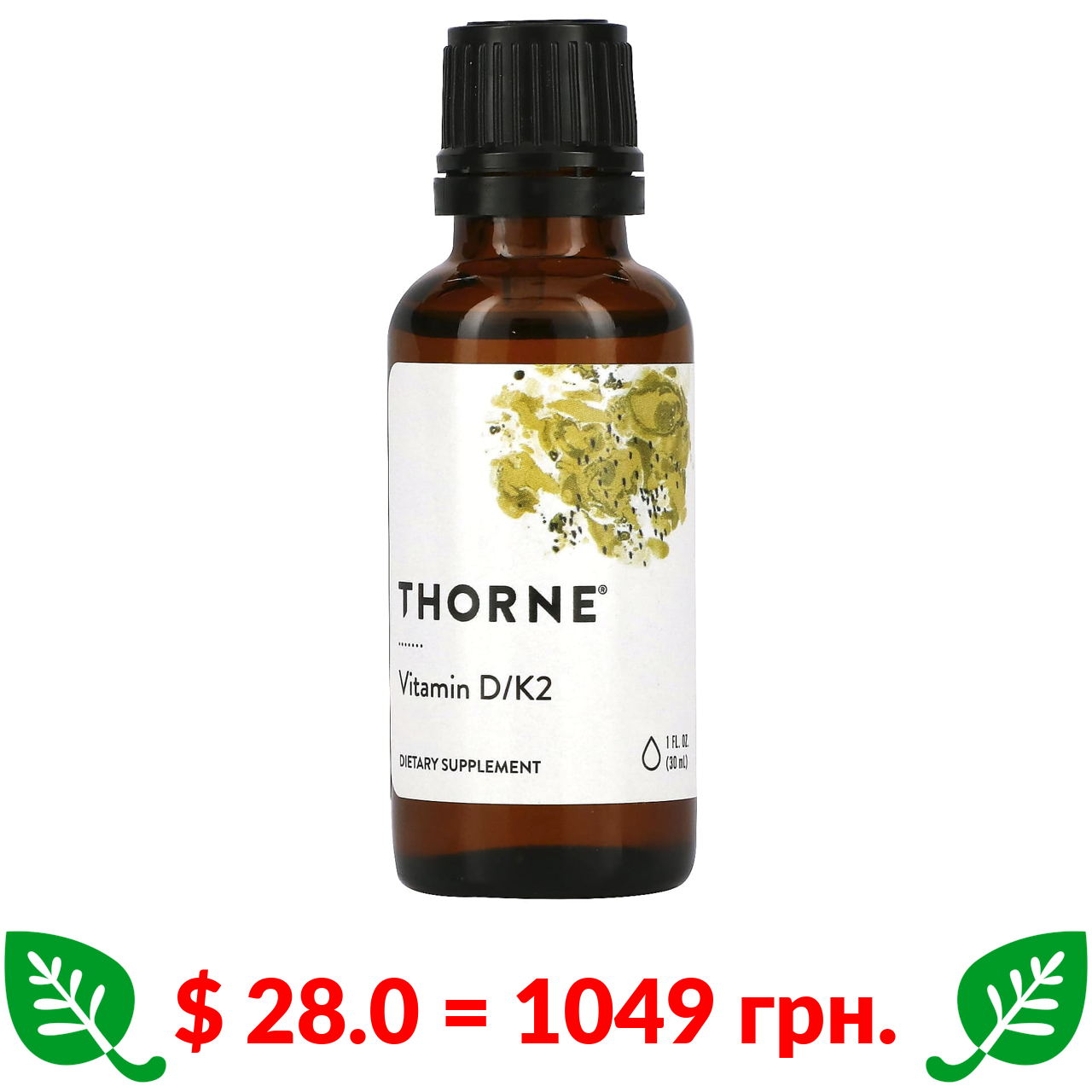 $ 28.0 = 1049 грн. Thorne, Vitamin D/K2, 1 fl oz (30 ml)