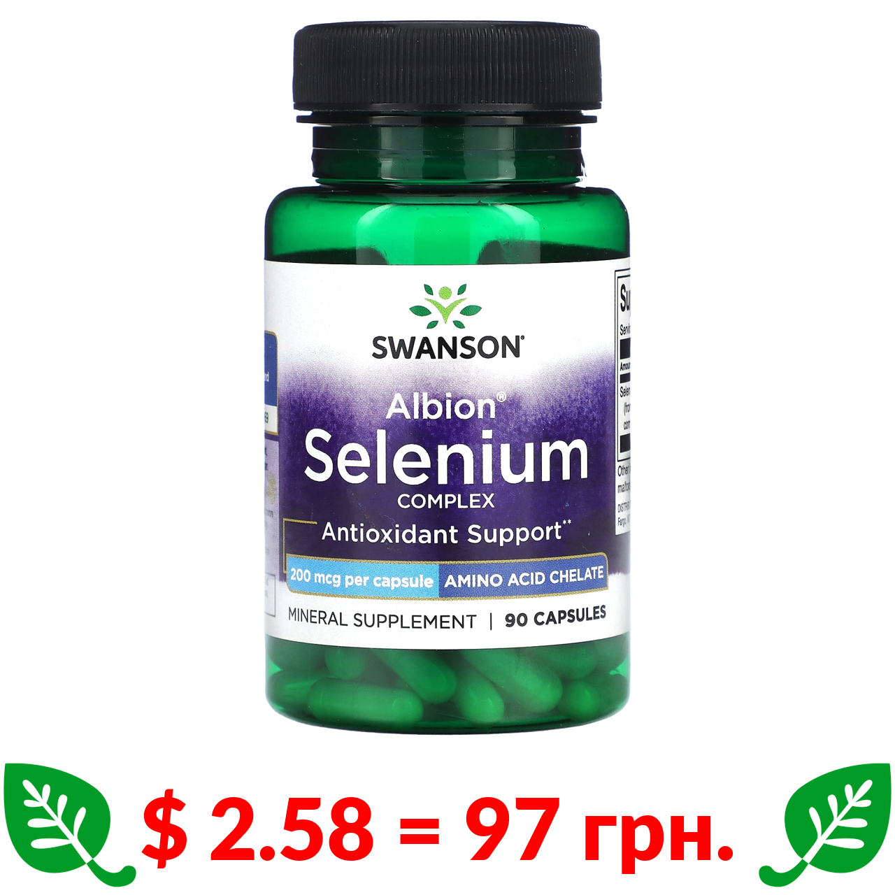$ 2.58 = 97 грн. ????️ у кошику ????️ Swanson, Albion Selenium Complex, 200 mcg , 90 Capsules