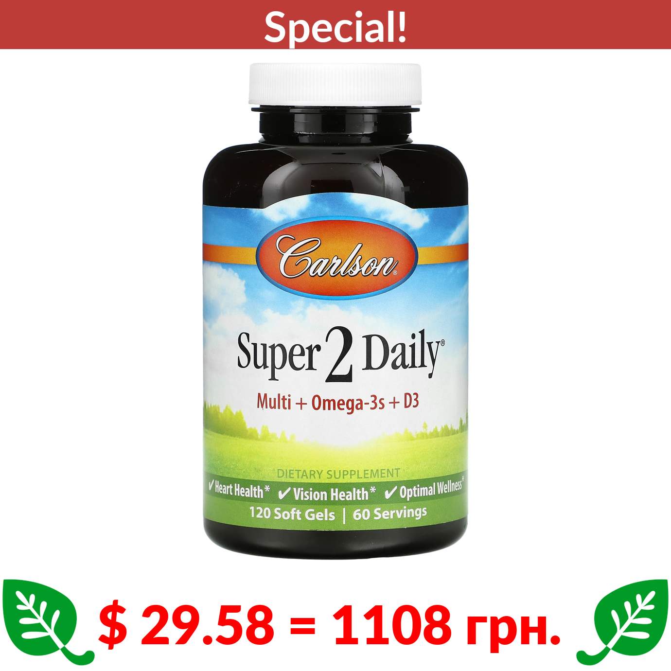 $ 29.58 = 1108 грн. ???? cуперакція! ???? Carlson, Super 2 Daily, 120 Soft Gels