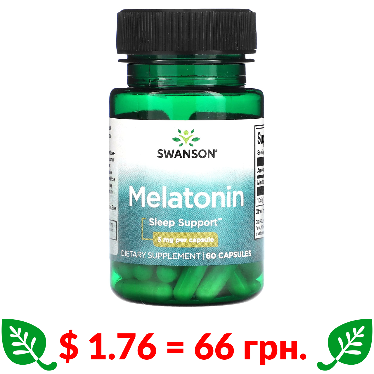 $ 1.76 = 66 грн. ????️ у кошику ????️ Swanson, Melatonin, 3 mg, 60 Capsules