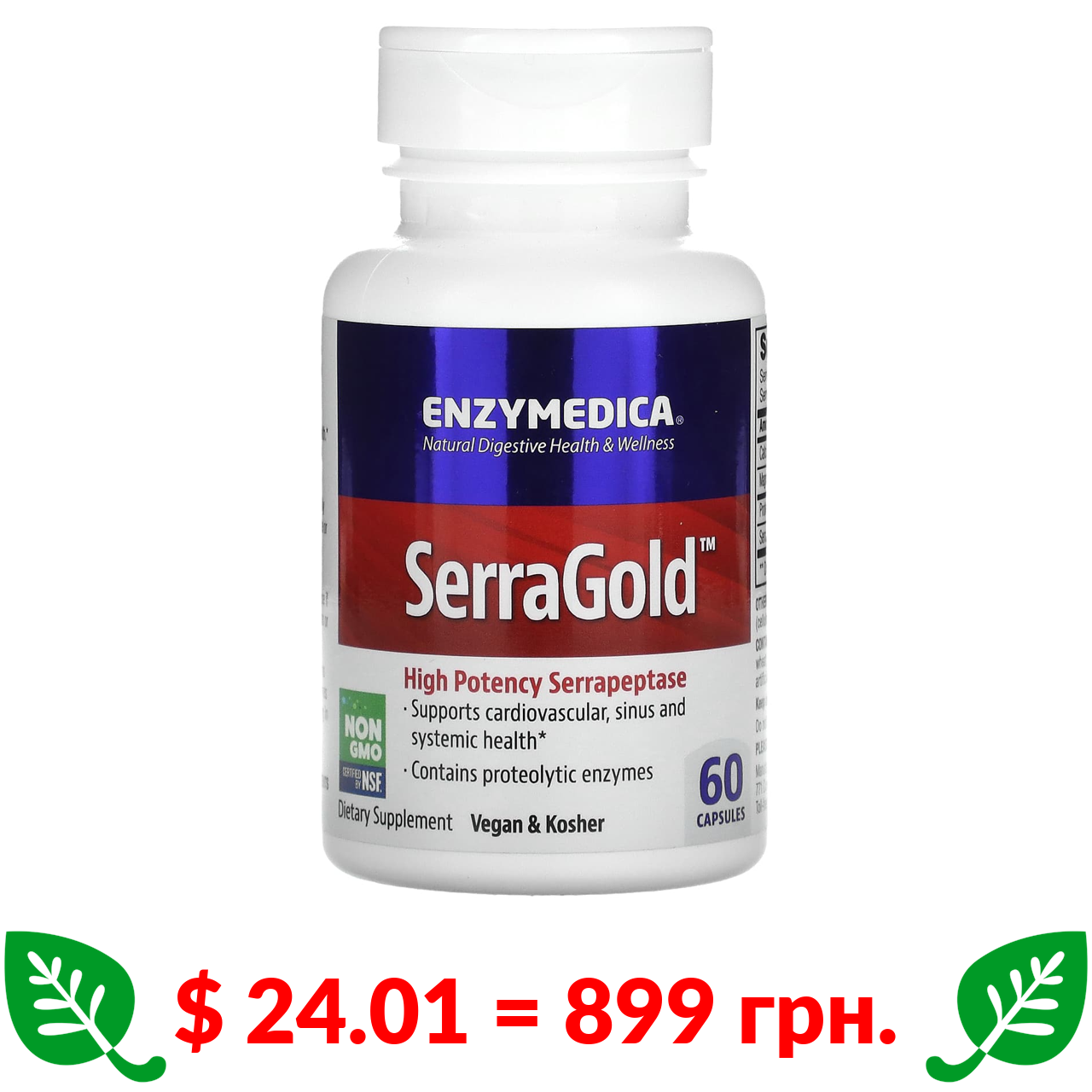 $ 24.01 = 899 грн. Enzymedica, SerraGold, High Potency Serrapeptase, 60 Capsules
