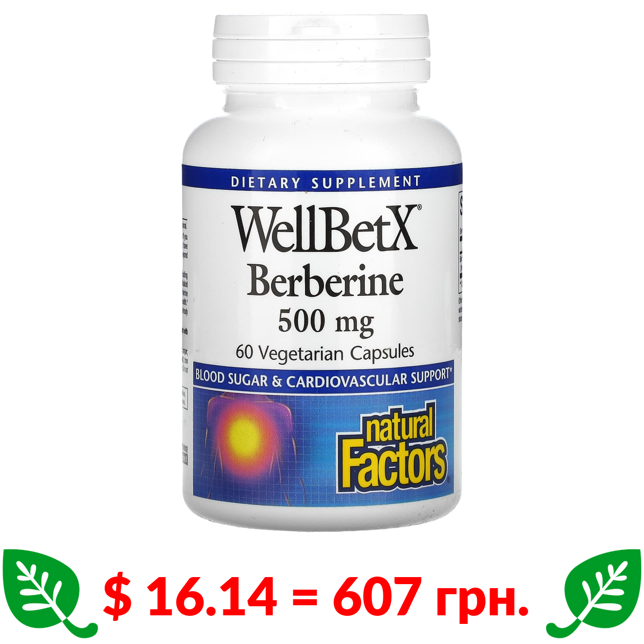 $ 27.9 = 1049 грн. Natural Factors, WellBetX, Berberine, 500 mg, 120 Vegetarian Capsules