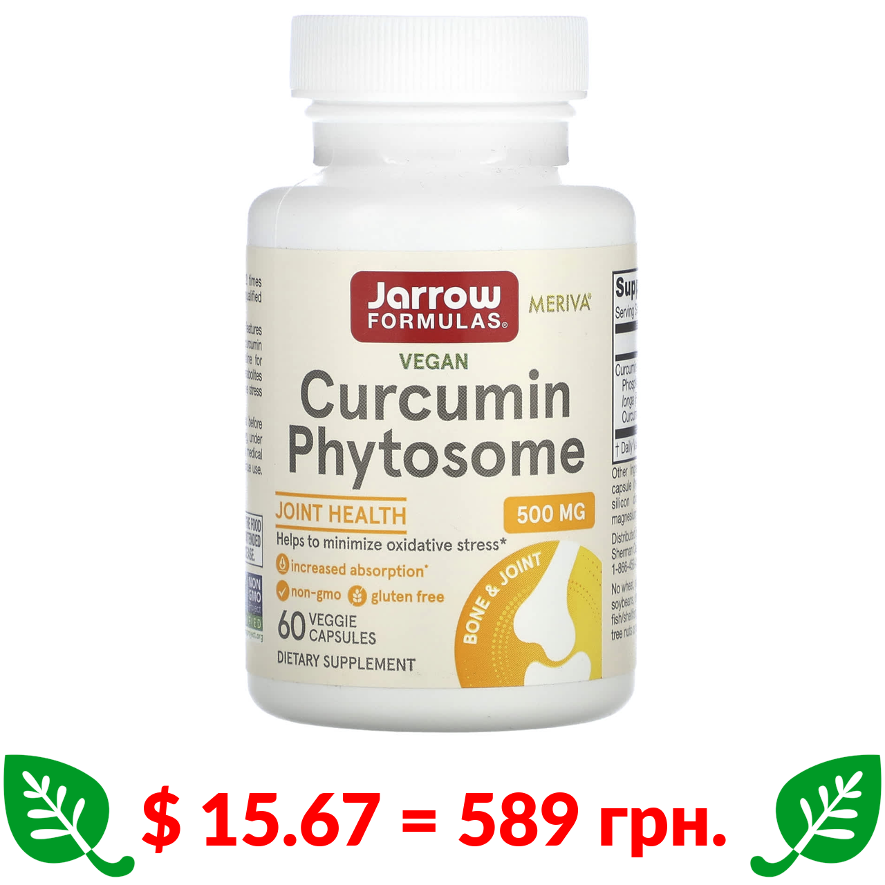 $ 15.67 = 589 грн. ????️ у кошику ????️ Jarrow Formulas, Vegan Curcumin Phytosome, 500 mg, 60 Veggie Capsules