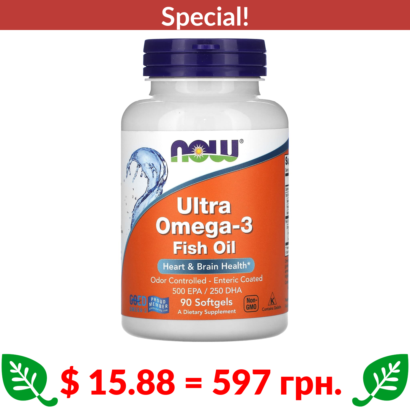 $ 15.88 = 597 грн. ???? cуперакція! ???? NOW Foods, Ultra Omega-3 Fish Oil, 90 Softgels