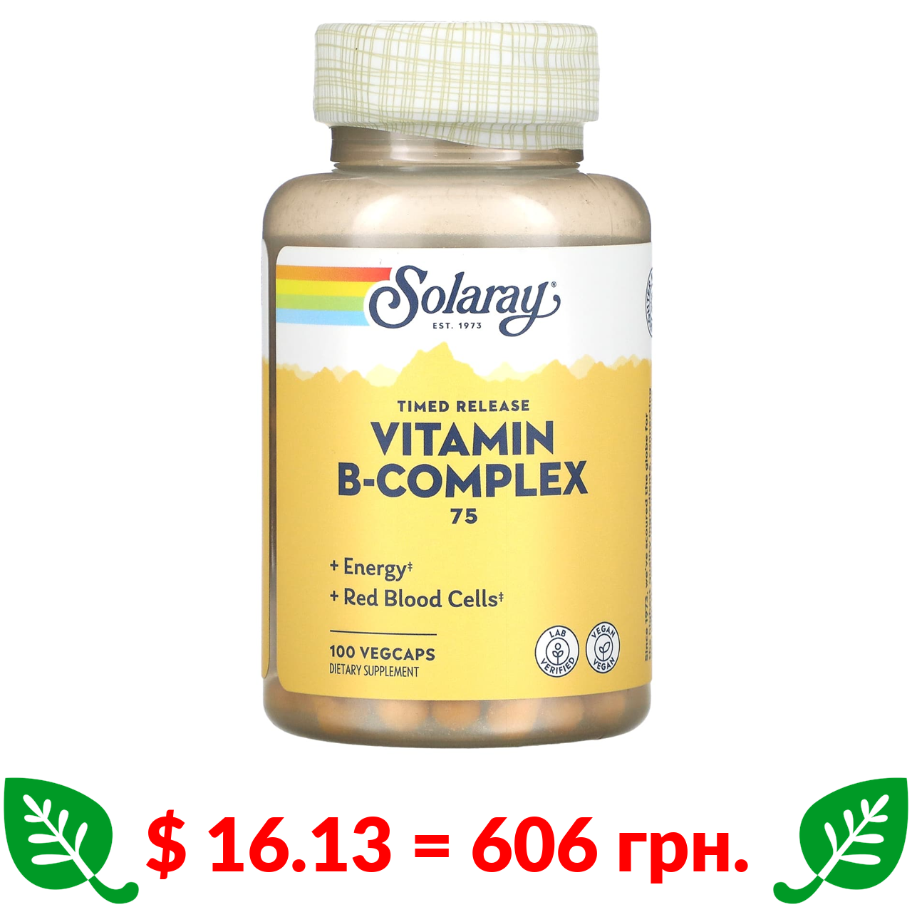 $ 16.13 = 606 грн. ????️ у кошику ????️ Solaray, Vitamin B-Complex 75, Timed-Release, 100 VegCaps