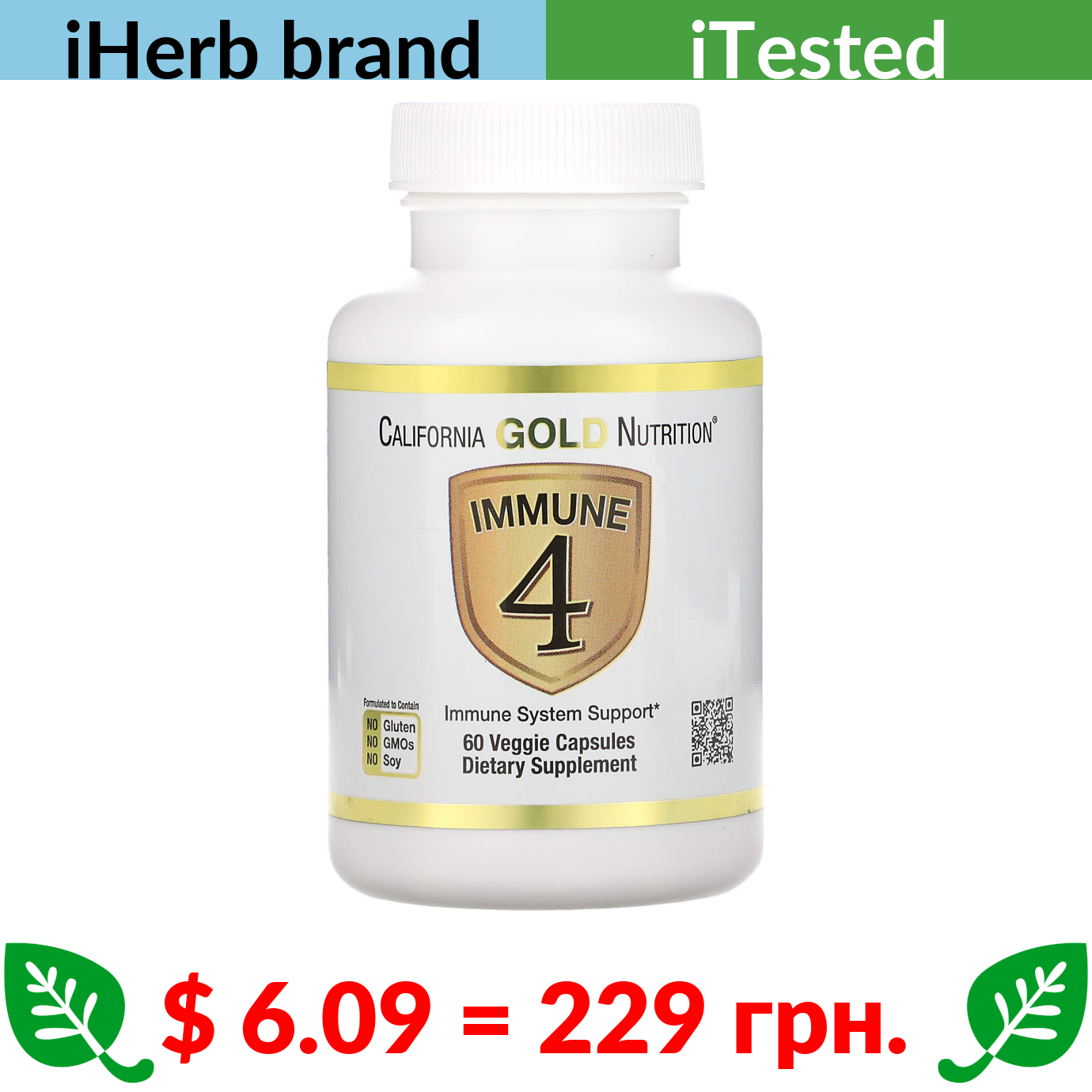$ 6.09 = 229 грн. ????️ у кошику ????️ California Gold Nutrition, Immune 4, Immune System Support, 60 Veggie Capsules