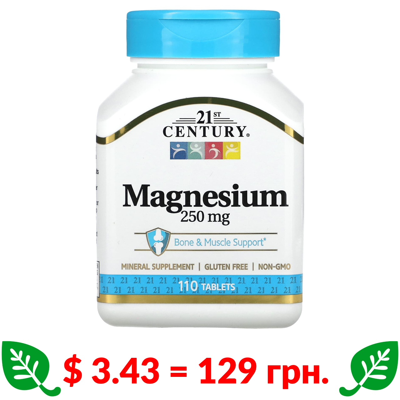 $ 3.43 = 129 грн. 21st Century, Magnesium, 250 mg, 110 Tablets
