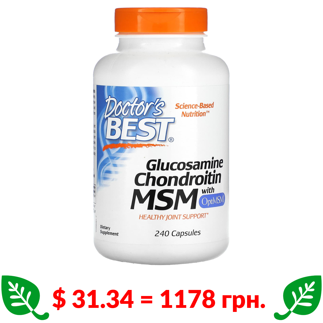 $ 31.34 = 1178 грн. Doctor’s Best, Glucosamine Chondroitin MSM with OptiMSM, 240 Capsules