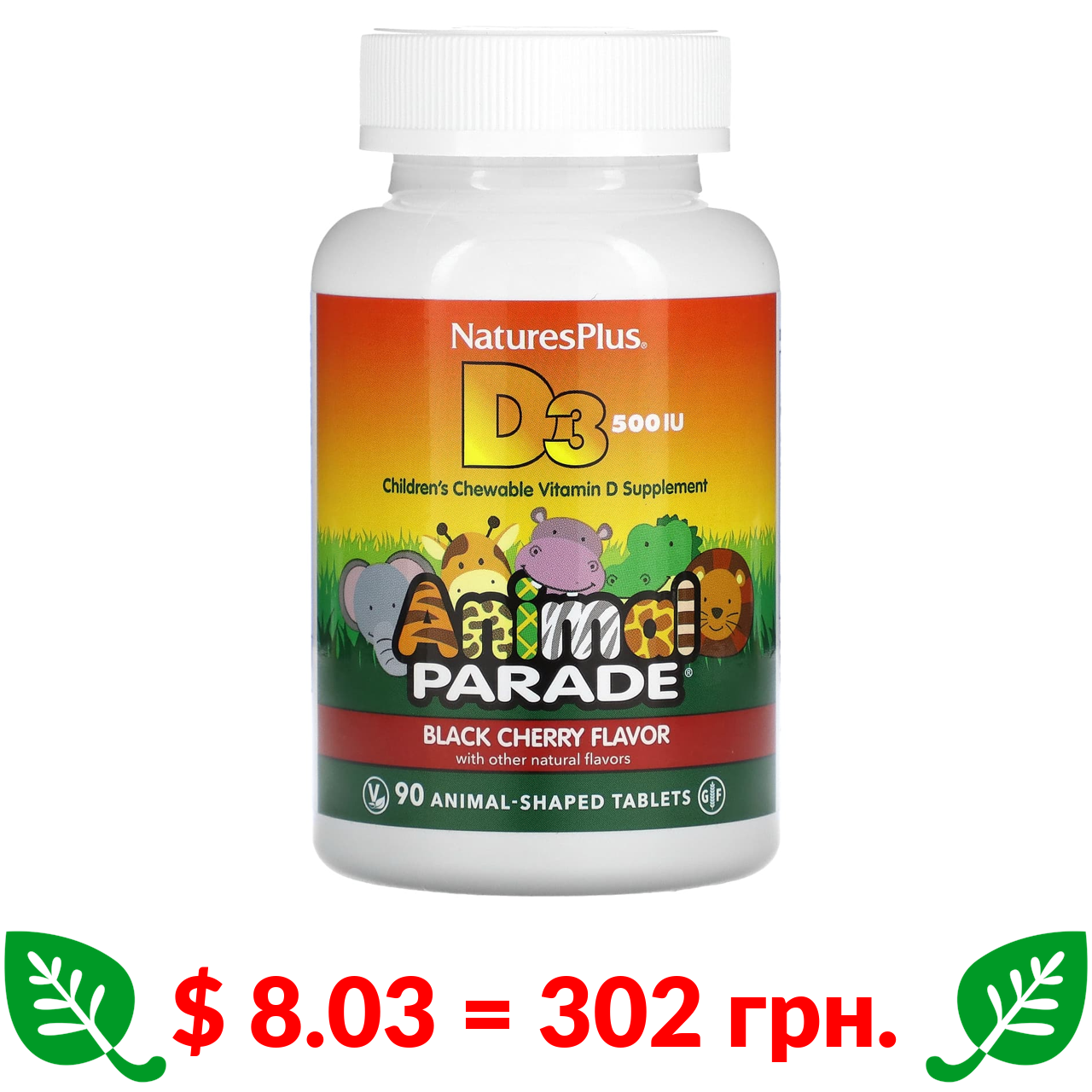 $ 8.03 = 302 грн. NaturesPlus, Animal Parade, Vitamin D3, Black Cherry, 500 IU, 90 Animal-Shaped Tablets