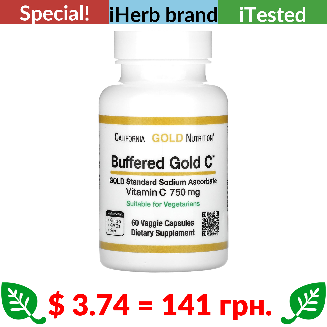 $ 3.74 = 141 грн. ???? cуперакція! ???? California Gold Nutrition, Buffered Gold C, GOLD Standard Sodium Ascorbate (Vitamin C), 750 mg, 60 Veggie Capsules