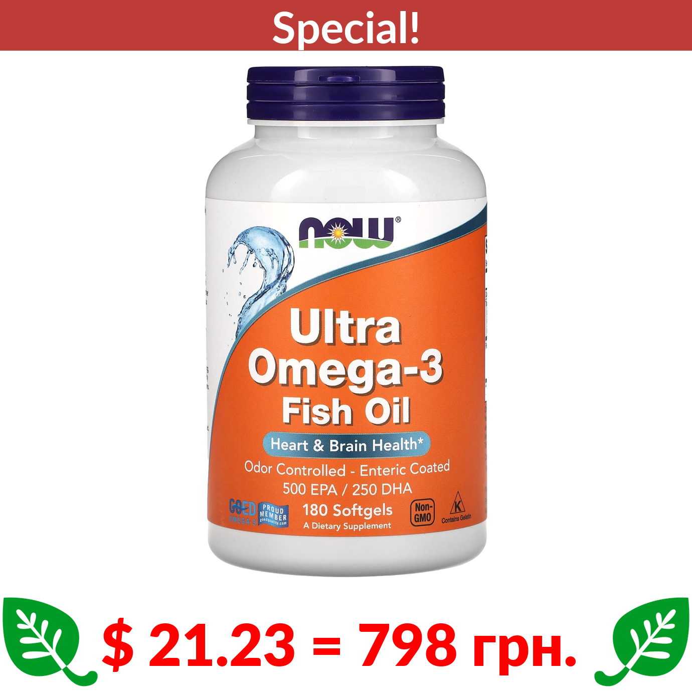 $ 21.23 = 798 грн. ???? cуперакція! ???? NOW Foods, Ultra Omega-3 Fish Oil, 180 Softgels