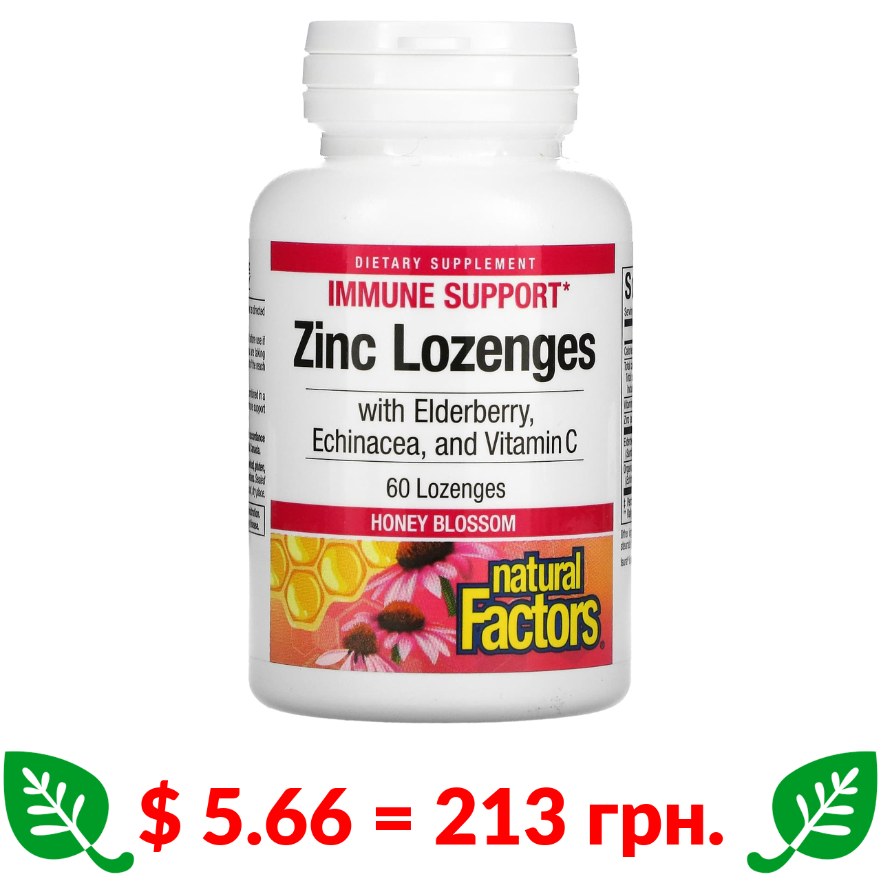 $ 5.66 = 213 грн. ????️ у кошику ????️ Natural Factors, Zinc Lonzenges, With Elderberry, Echinacea & Vitamin C, Honey Blossom, 60 Lozenges