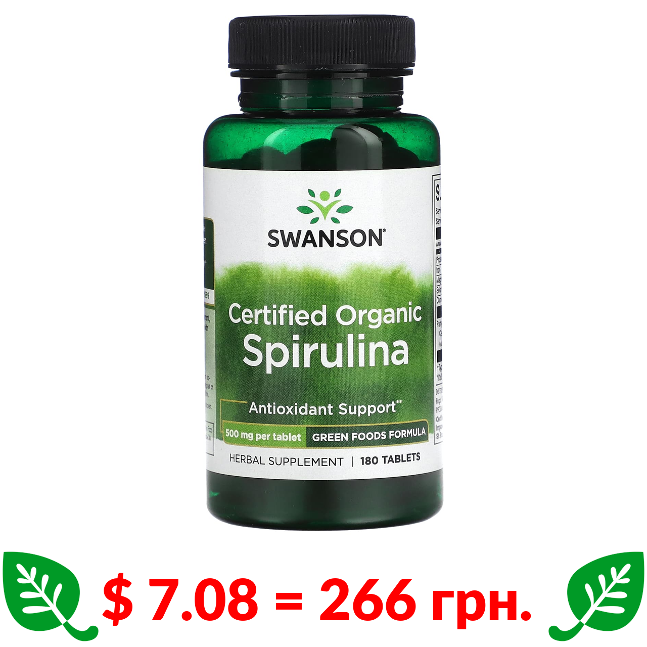 $ 7.08 = 266 грн. ????️ у кошику ????️ Swanson, Certified Organic Spirulina, 500 mg, 180 Tablets