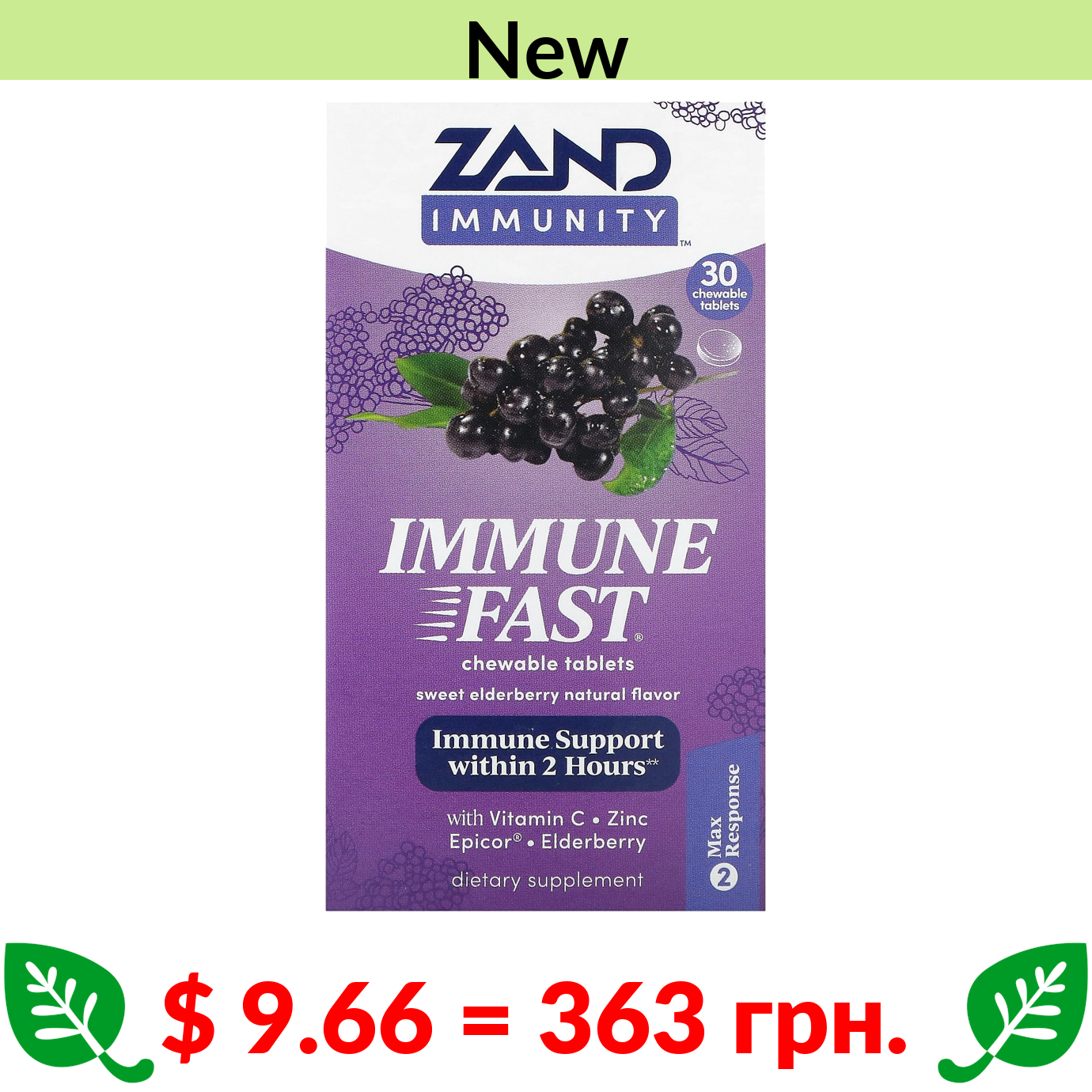 $ 9.66 = 363 грн. ????️ у кошику ????️ Zand, Immunity, Immune Fast, Sweet Elderberry, 30 Chewable Tablets
