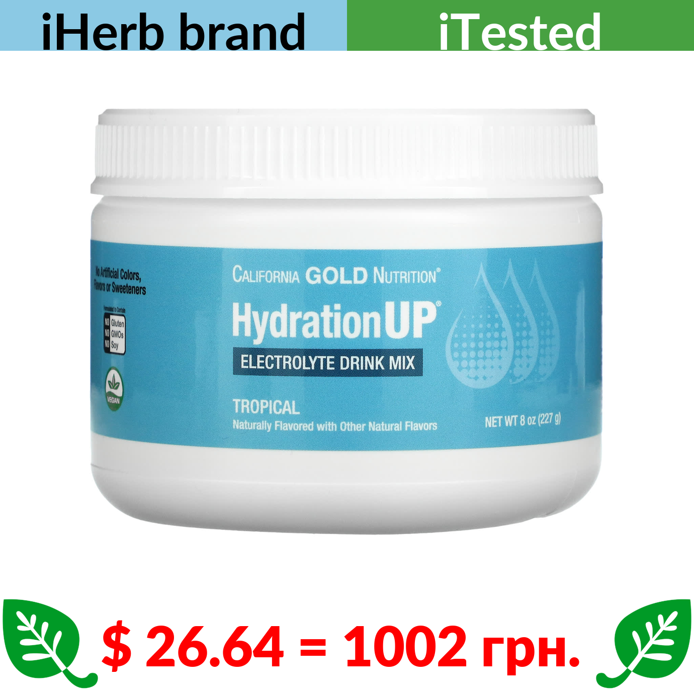 $ 26.64 = 1002 грн. California Gold Nutrition, HydrationUP, Electrolyte Drink Mix, Tropical, 8 oz (227 g)
