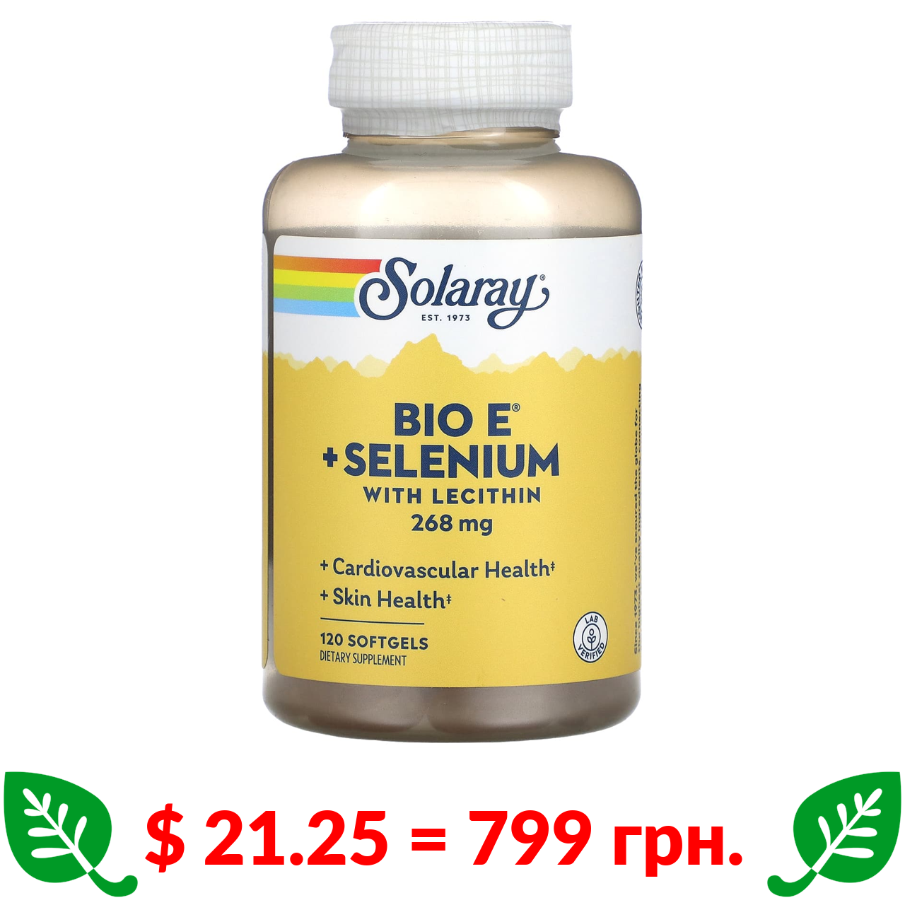 $ 21.25 = 799 грн. ????️ у кошику ????️ Solaray, Bio E + Selenium with Lecithin, 268 mg, 120 Softgels (134 mg per Softgel)