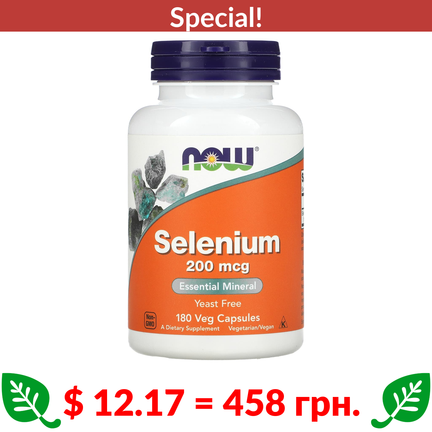 $ 12.17 = 458 грн. ???? cуперакція! ???? NOW Foods, Selenium, 200 mcg, 180 Veg Capsules