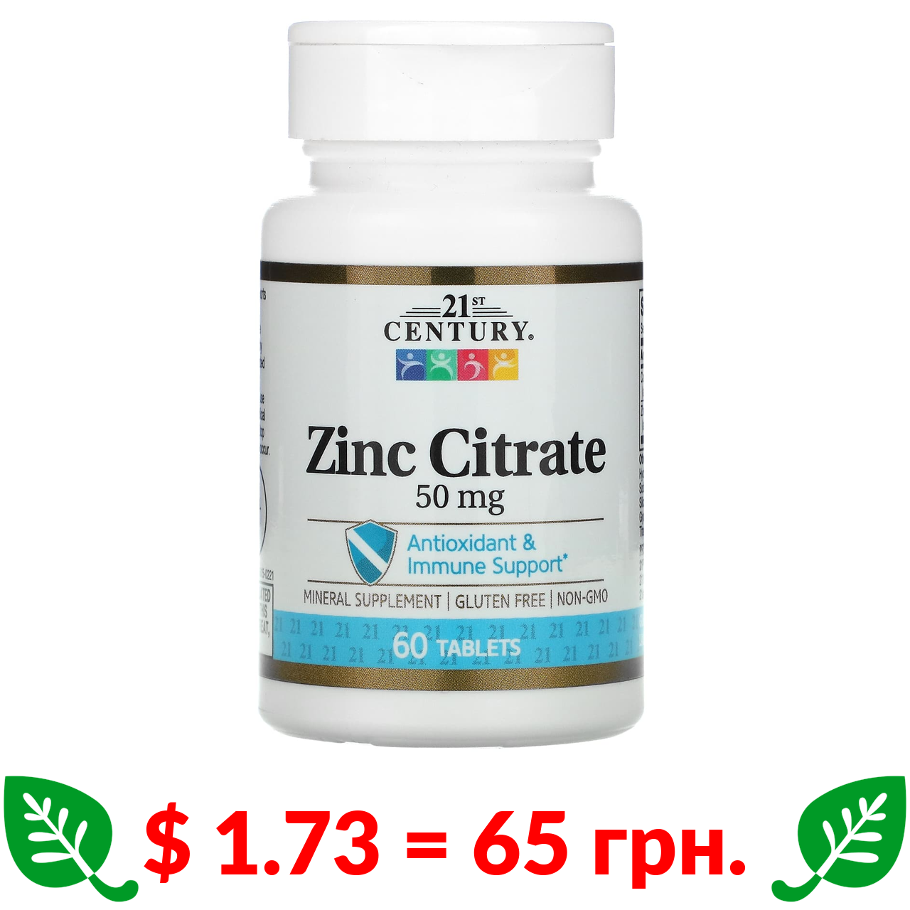 $ 1.73 = 65 грн. ????️ у кошику ????️ 21st Century, Zinc Citrate, 50 mg, 60 Tablets
