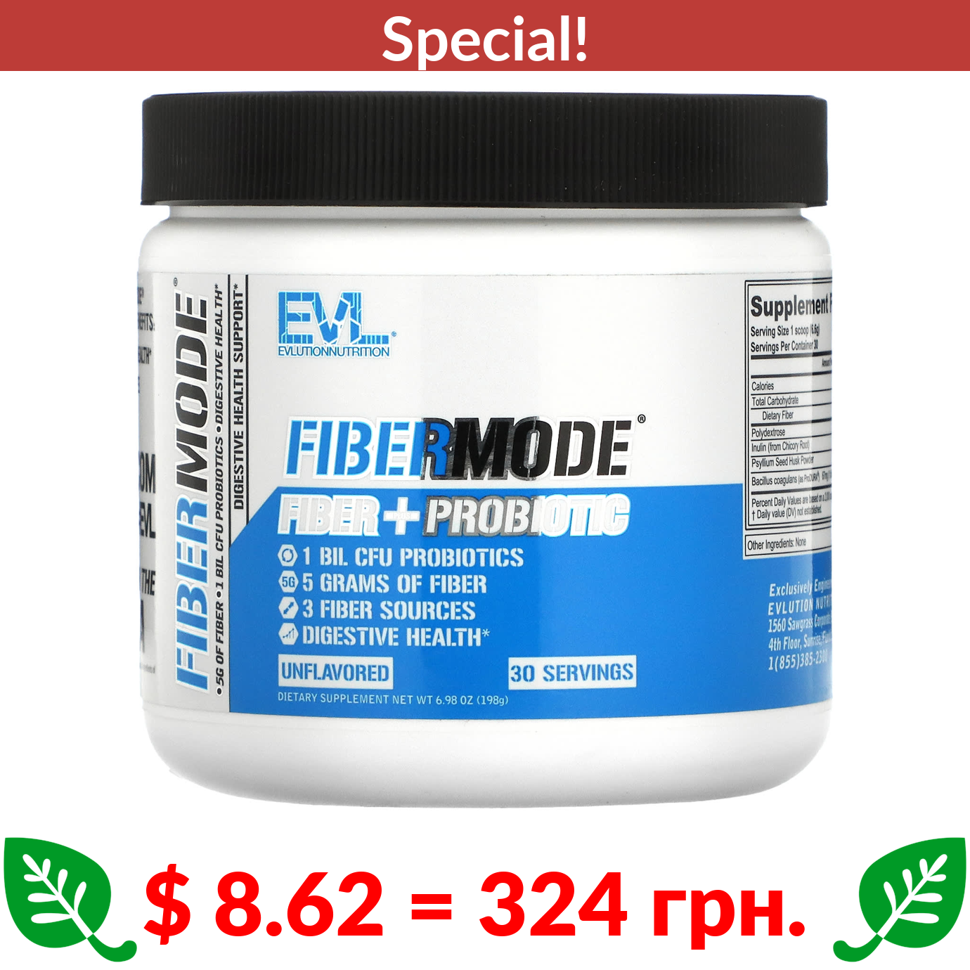 $ 8.62 = 324 грн. ???? cуперакція! ???? EVLution Nutrition, FiberMode, Fiber + Probiotic, Unflavored, 6.98 oz (198 g)