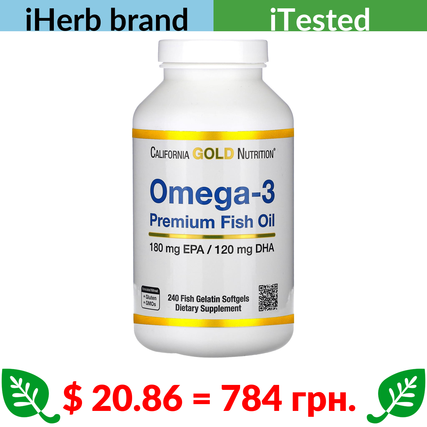 $ 7.16 = 269 грн. ???? cуперакція! ???? California Gold Nutrition, Omega-3 Premium Fish Oil, 2000 mg, 100 Fish Gelatin Softgels (180 EPA / 120 DHA per Softgel)
