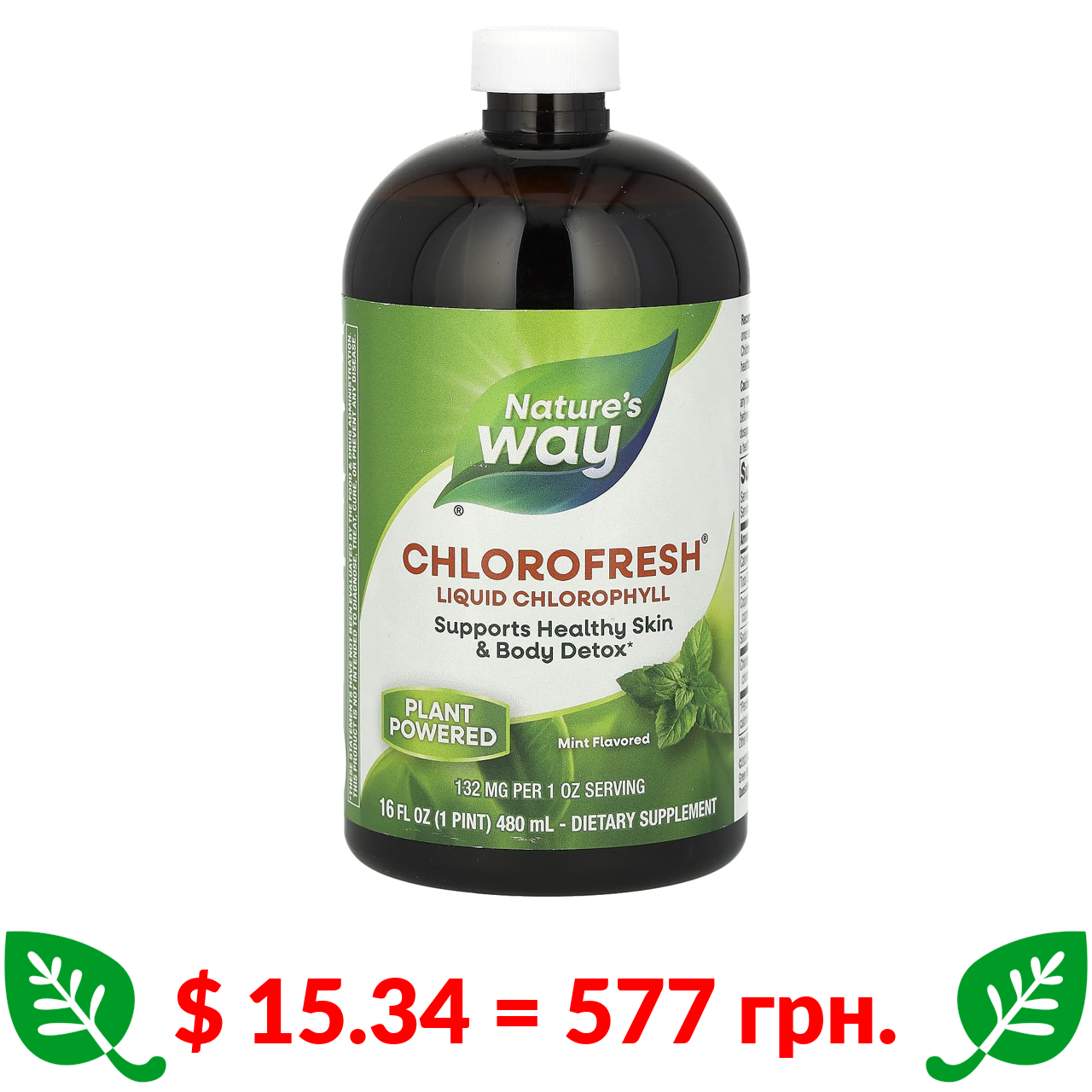 $ 15.34 = 577 грн. Nature’s Way, Chlorofresh, Liquid Chlorophyll, Mint, 132 mg, 16 fl oz (480 ml) (132 mg per 2 Tbsp)