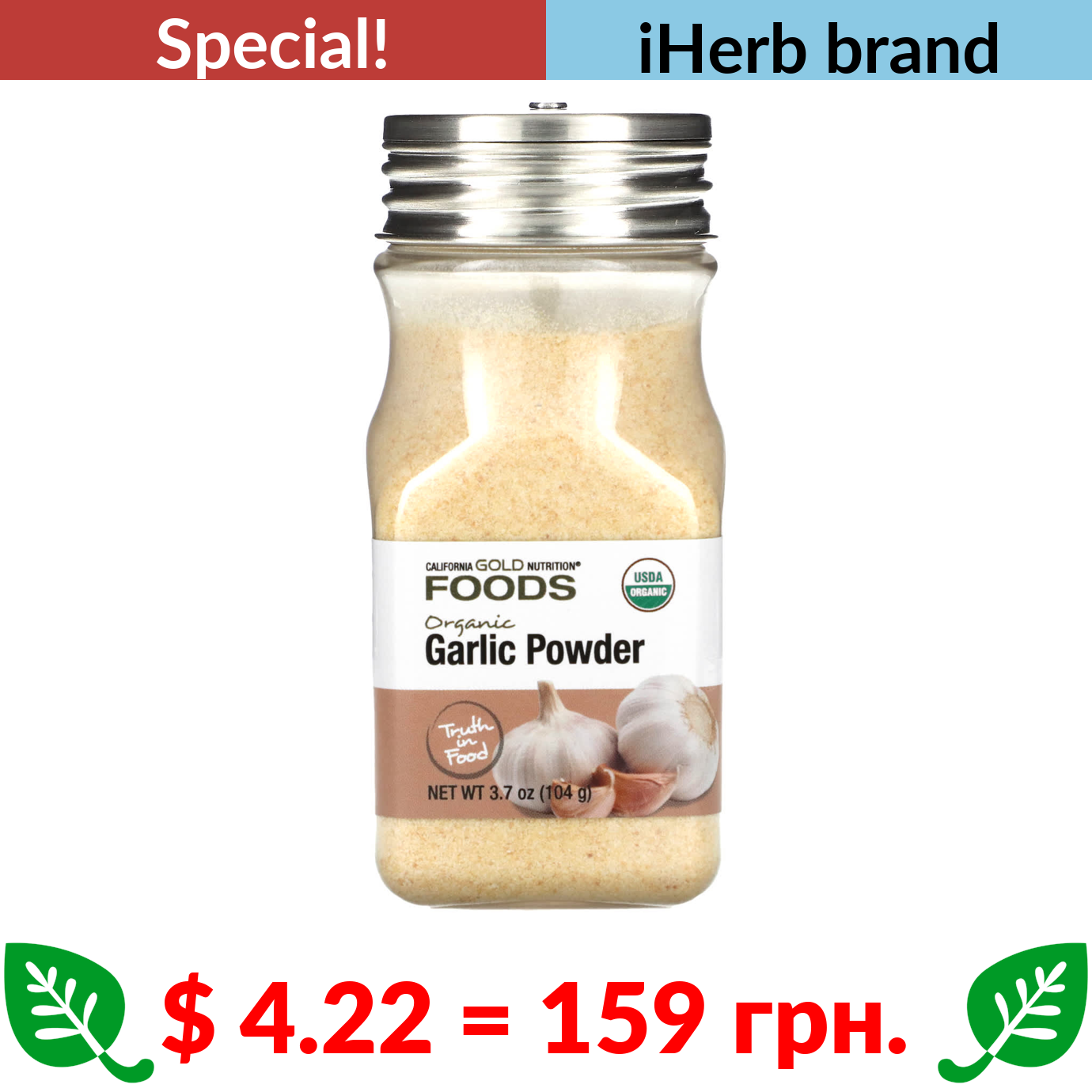 $ 4.22 = 159 грн. ???? cуперакція! ???? California Gold Nutrition, FOODS – Organic Garlic Powder, Non-Irradiated, Non-ETO, 3.7 oz (104 g)