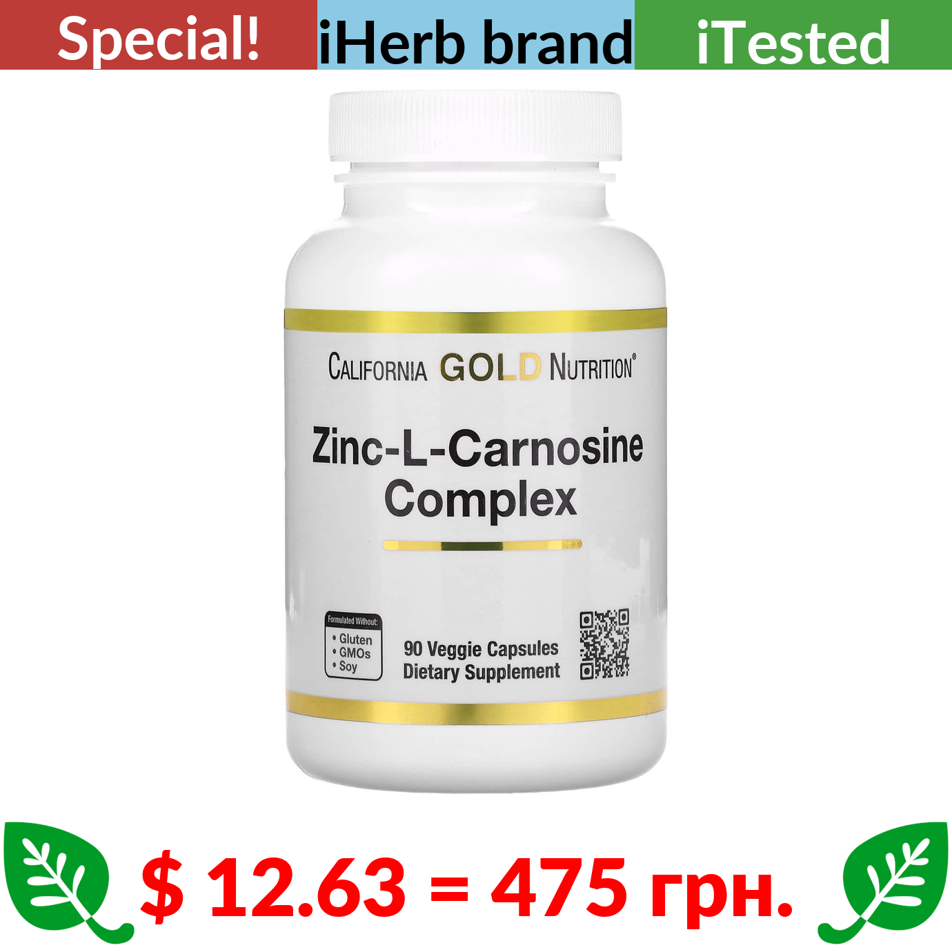 $ 12.63 = 475 грн. ???? cуперакція! ???? California Gold Nutrition, Zinc-L-Carnosine Complex, 90 Veggie Caps