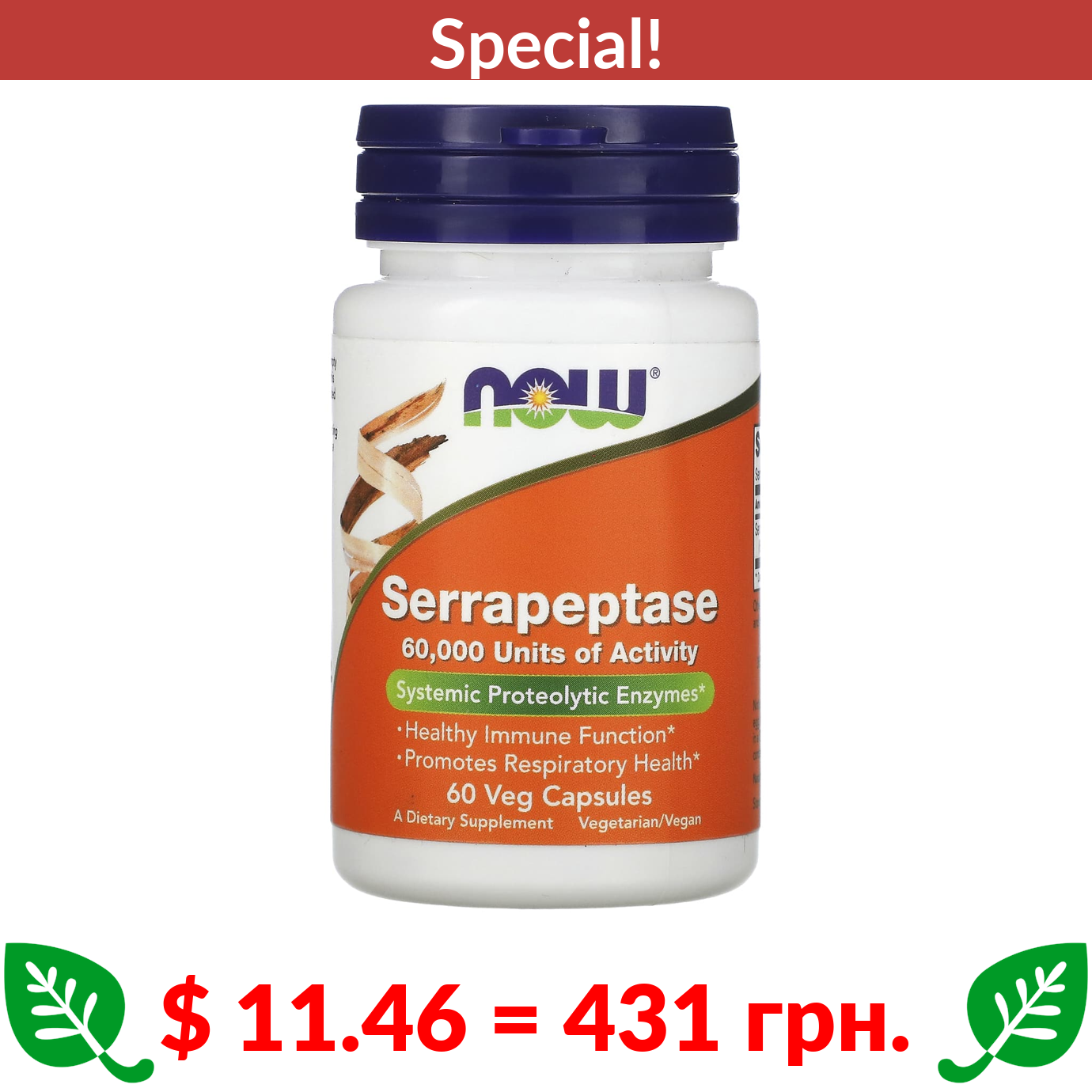 $ 11.46 = 431 грн. ???? cуперакція! ???? NOW Foods, Serrapeptase, 60 Veg Capsules