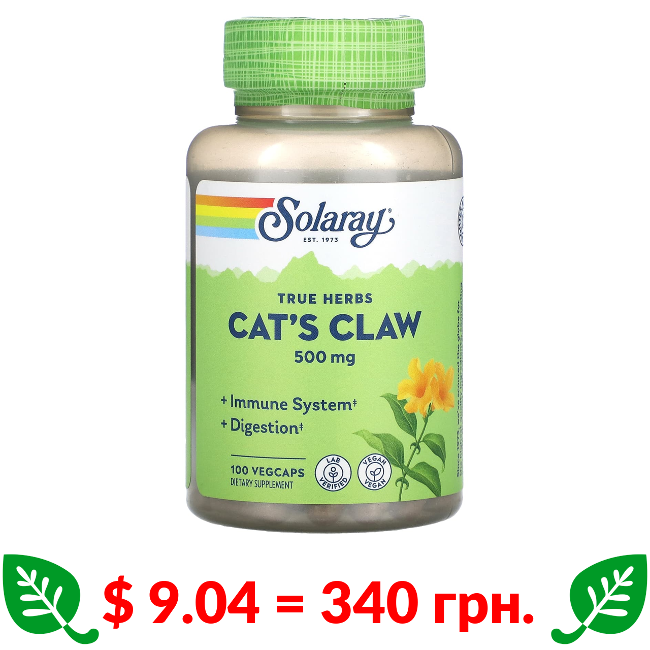 $ 9.04 = 340 грн. ????️ у кошику ????️ Solaray, Cat’s Claw, 500 mg, 100 VegCaps