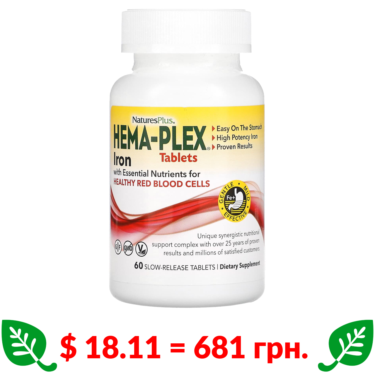 $ 18.11 = 681 грн. NaturesPlus, Hema-Plex, Iron with Essential Nutrients for Healthy Red Blood Cells , 60 Slow-Release Tablets