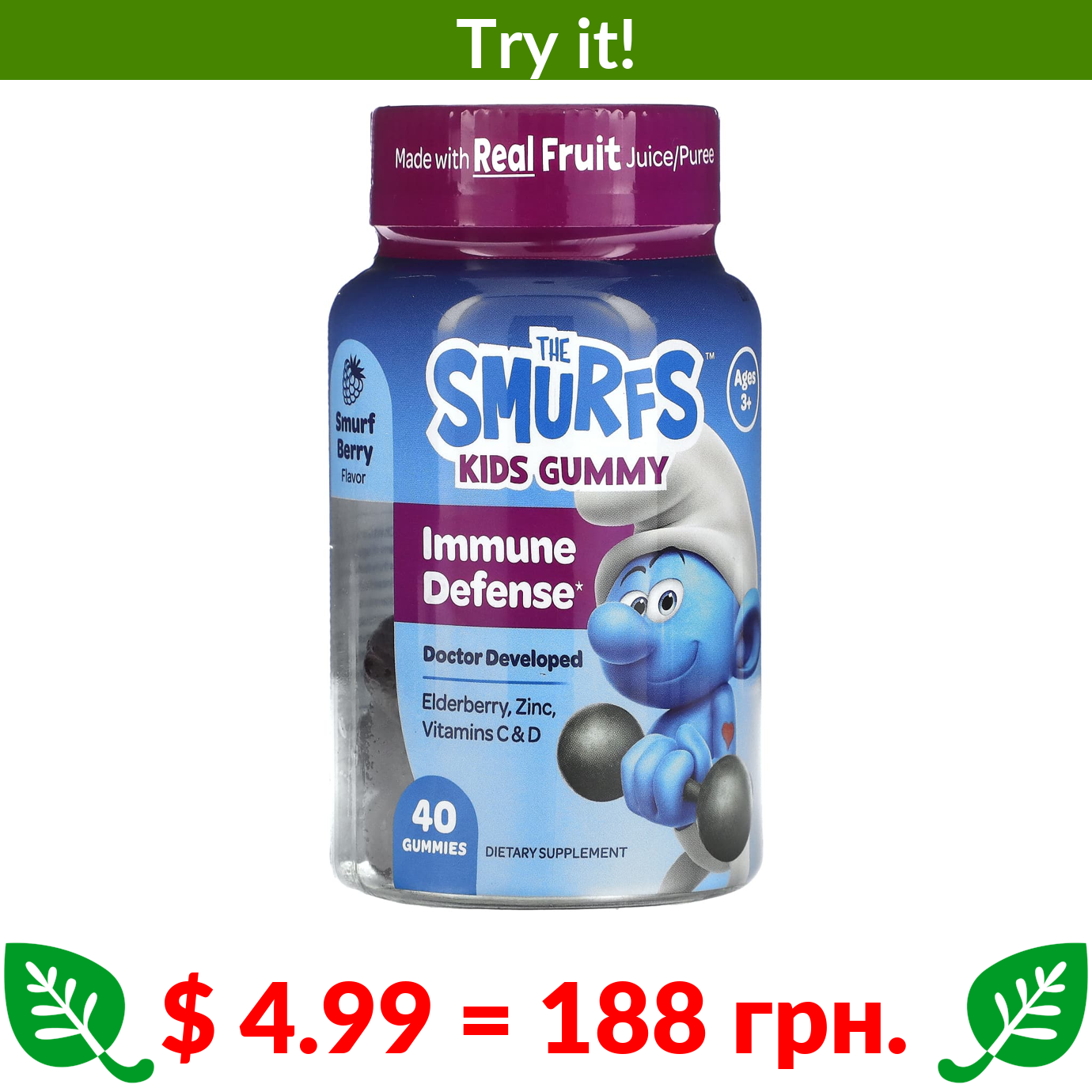 $ 4.99 = 188 грн. ???? варто спробувати ???? The Smurfs, Kids Gummy, Immune Defense, Ages 3+, Smurf Berry, 40 Gummies