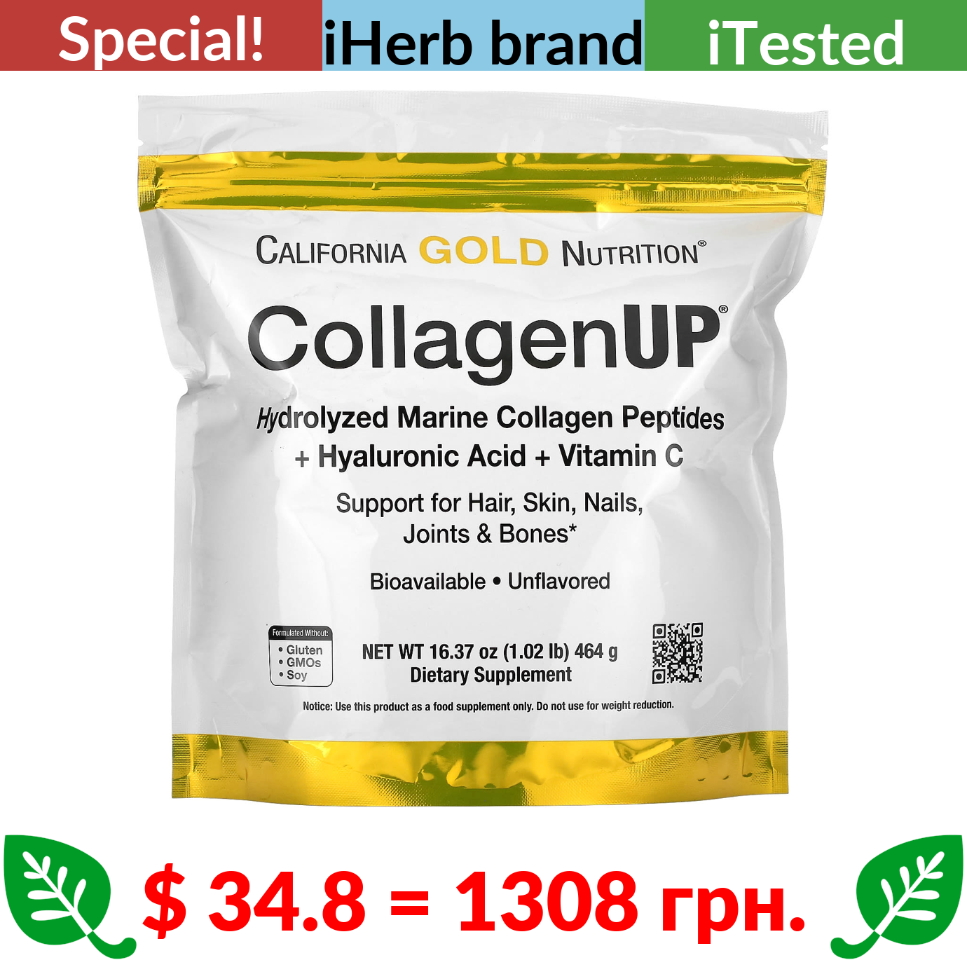 $ 34.8 = 1308 грн. ???? cуперакція! ???? California Gold Nutrition, CollagenUP, Hydrolyzed Marine Collagen Peptides with Hyaluronic Acid and Vitamin C, Unflavored, 16.37 oz (464 g)