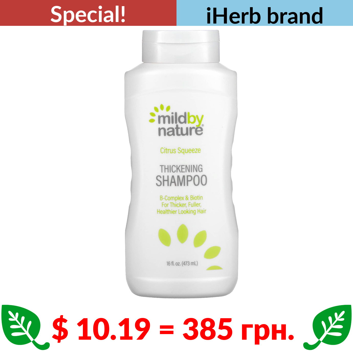 $ 10.19 = 385 грн. ???? cуперакція! ???? Mild By Nature, Thickening B-Complex + Biotin Shampoo, No Sulfates, Citrus Squeeze, 16 fl oz (473 ml)