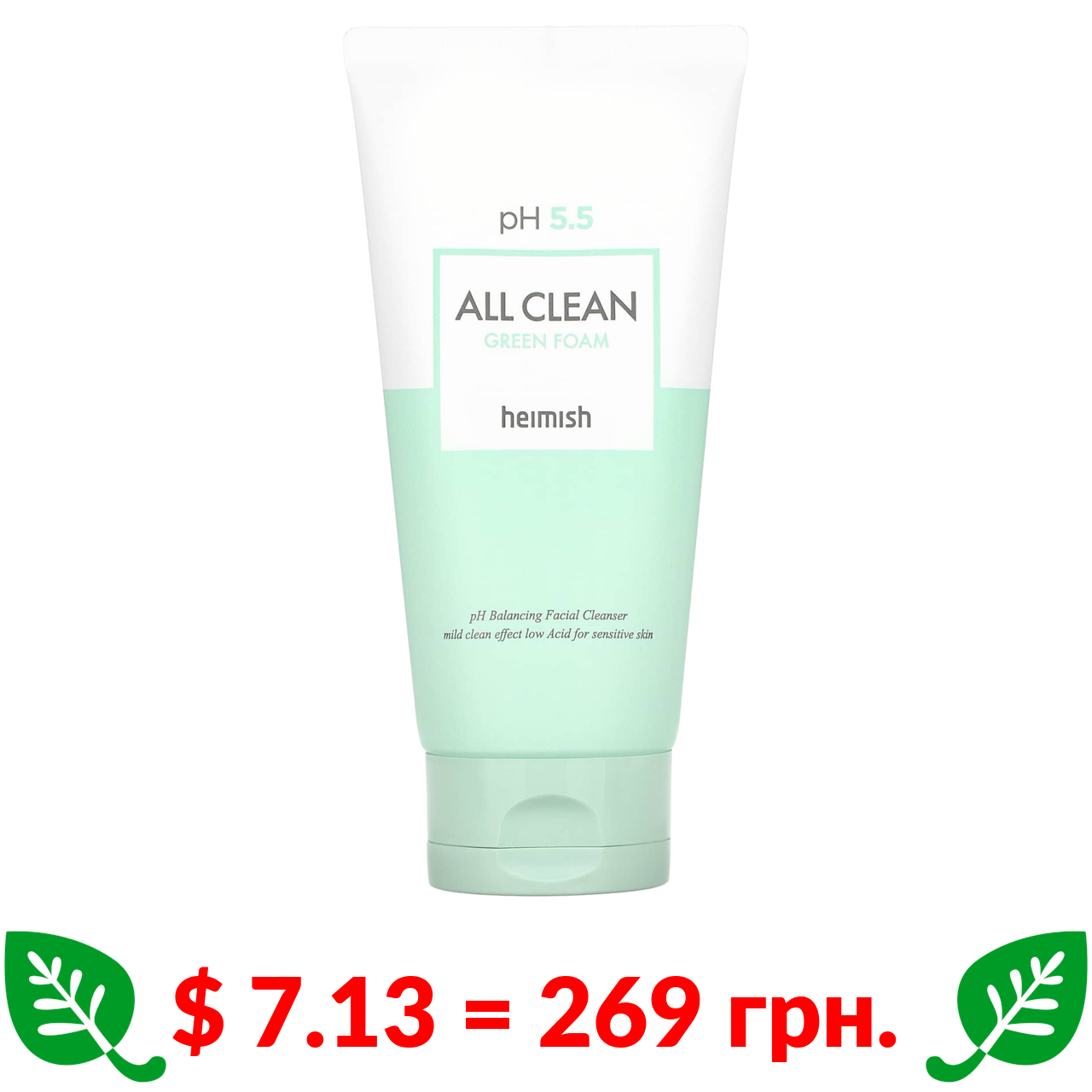 $ 7.13 = 269 грн. ????️ у кошику ????️ Heimish, All Clean Green Foam, Cleanser, 150 g